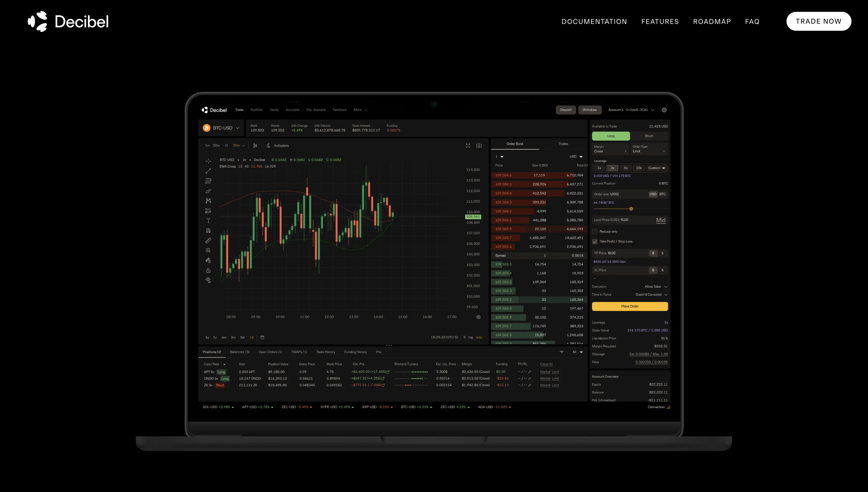 Decibelは、最先端の技術を駆使したオンチェーン型のトレーディングエンジンです。