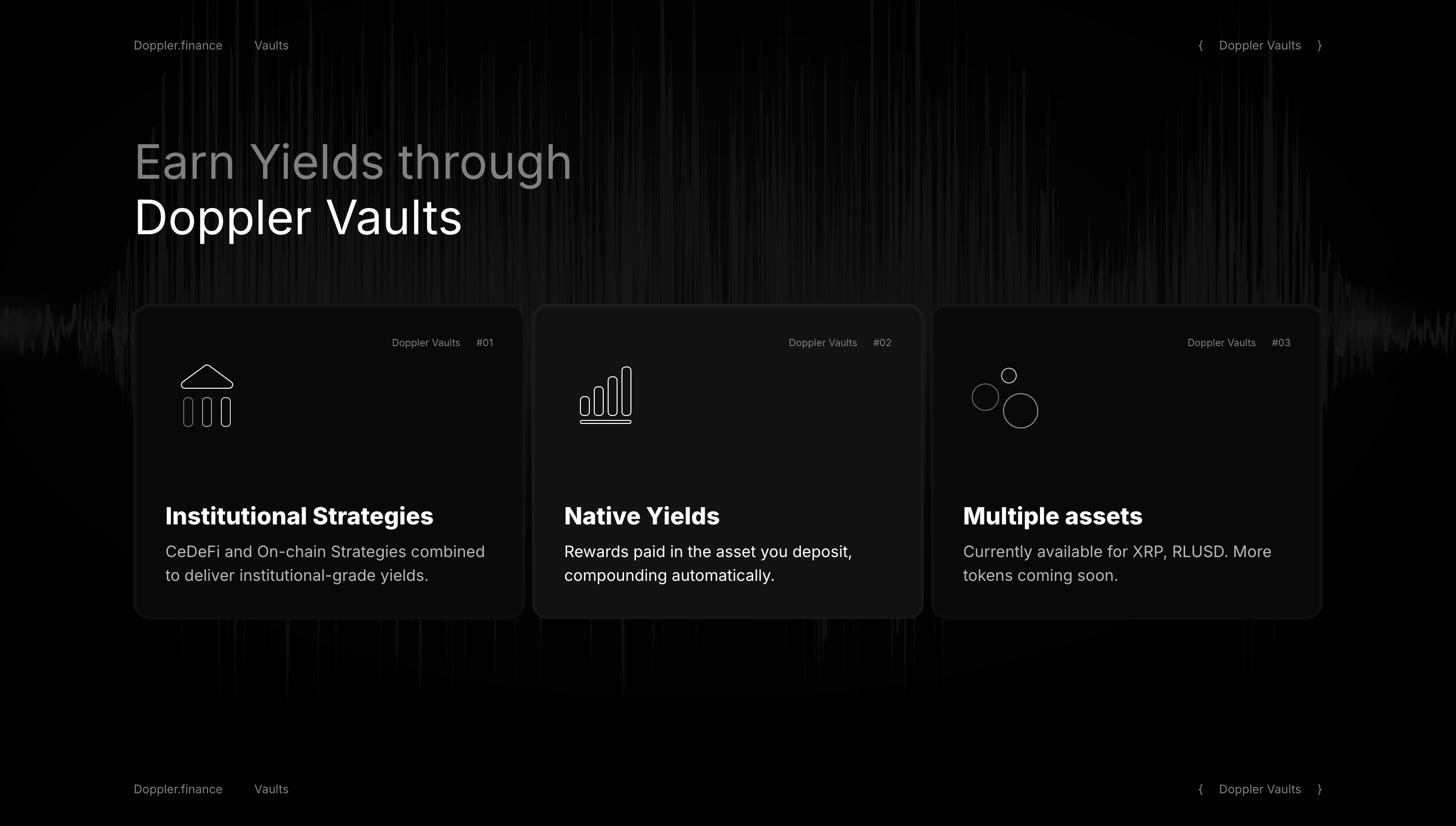 Doppler FinanceはXRPLを基盤に構築された利回りインフラであり、従来のCeFiが持つ利便性とDeFiが提供する透明性を融合させたCeDeFiモデルを採用しています。