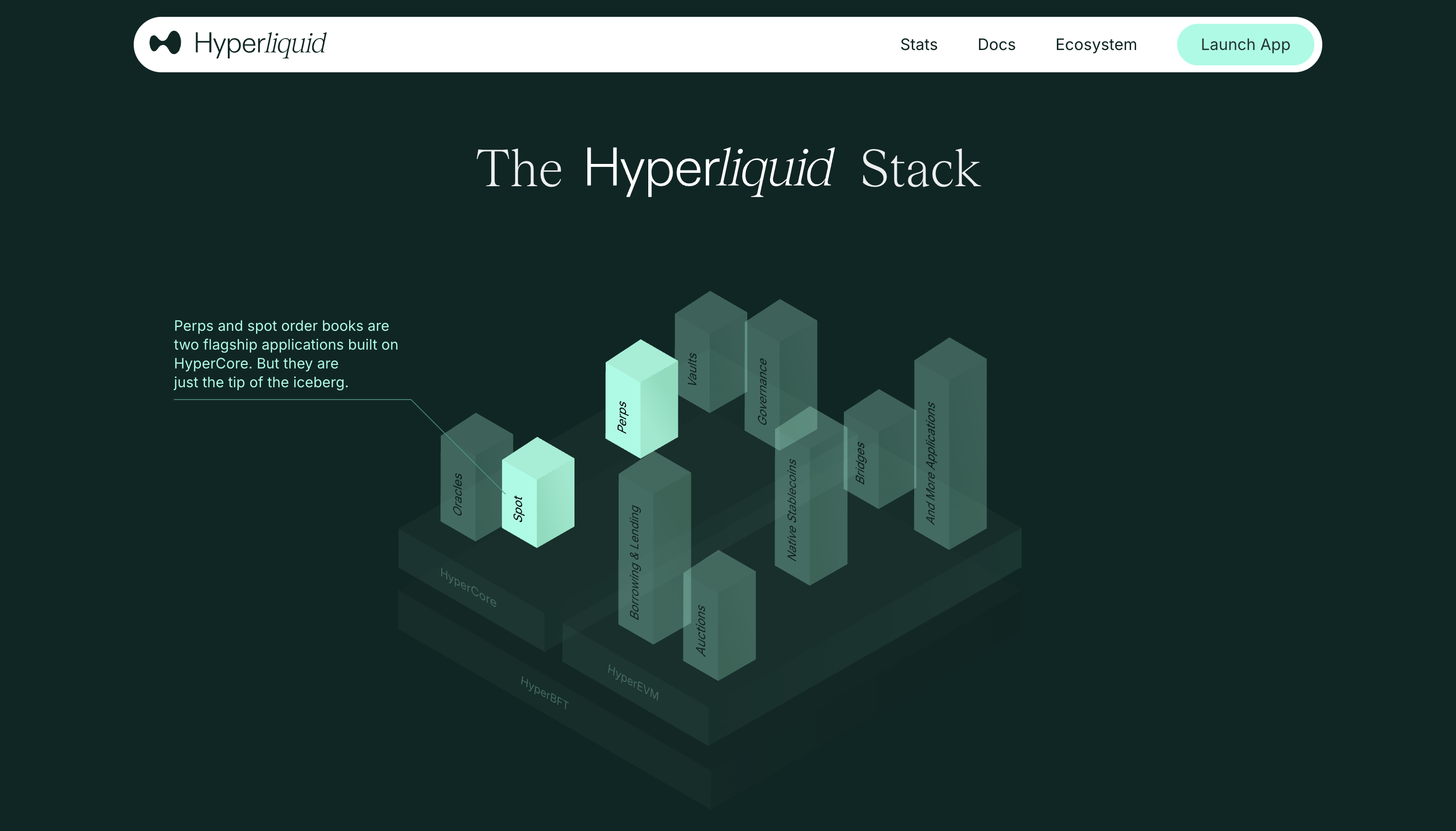 「HyperCore」と呼ばれる実行層が、現物取引および永久先物取引の処理を担います。