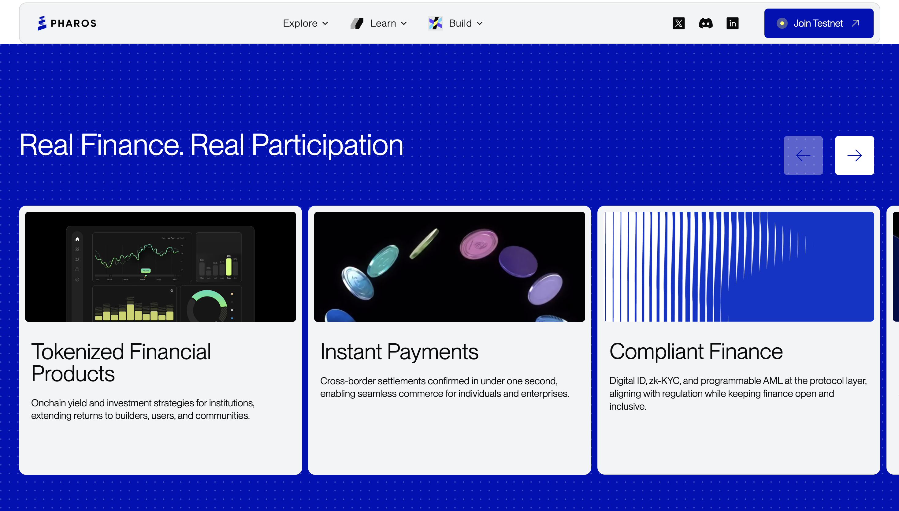Pharosは、世界中の金融資産をオンチェーンで安全かつ瞬時に流通させるためにゼロから設計された、高性能なLayer1ブロックチェーンです。