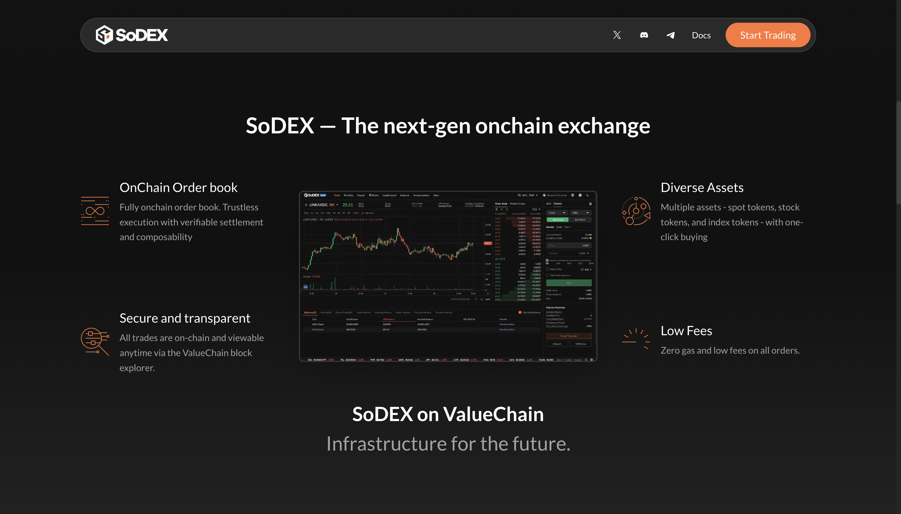 基盤となるのは、SoDEXのために最適化された独自レイヤー1ブロックチェーン「ValueChain」です。