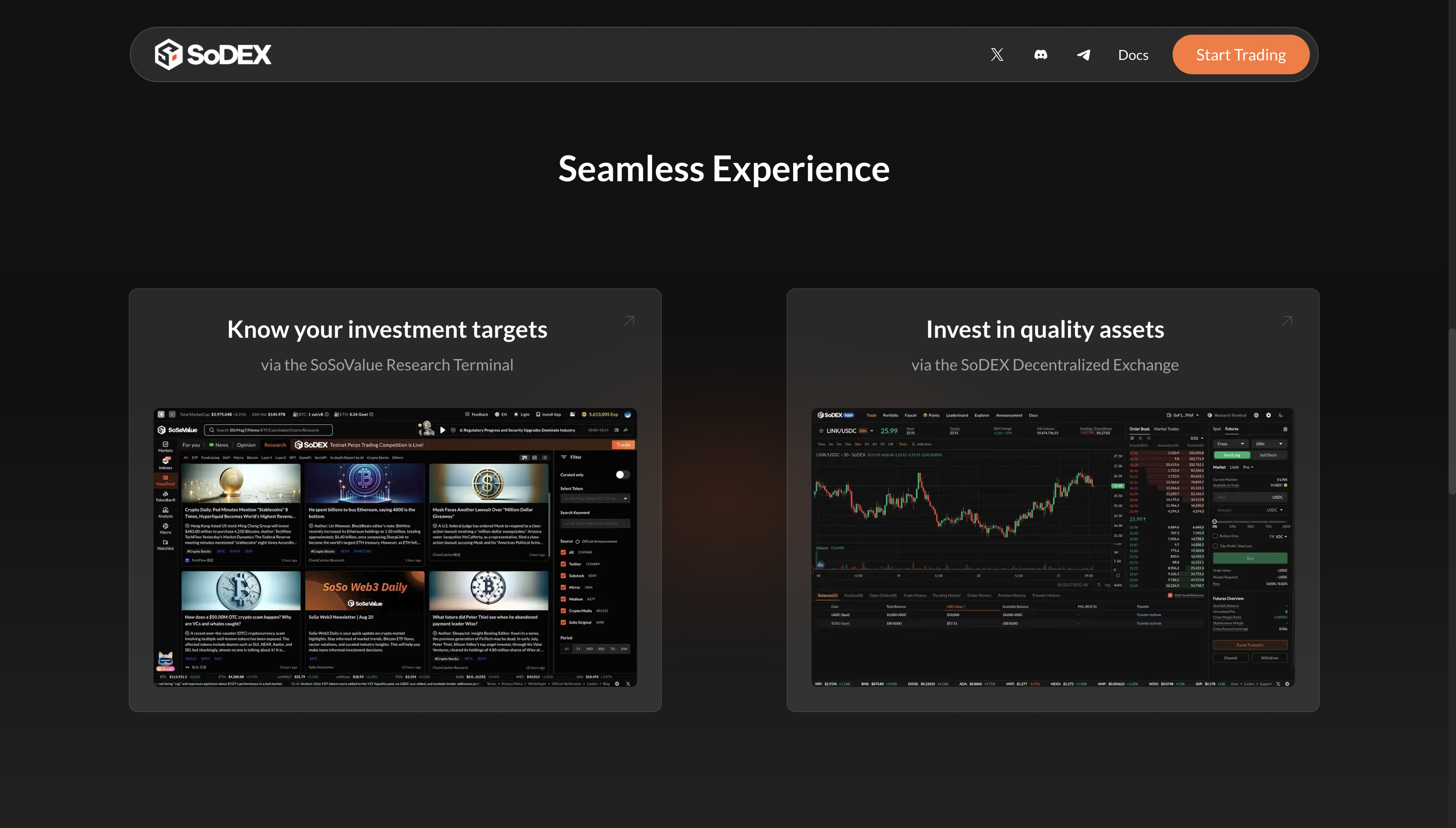 SoSoValueは、暗号資産市場の膨大なニュース、オンチェーンデータ、市場動向をAIで解析するパイオニアであり、その知見がSoDEXの設計思想に深く反映されています。