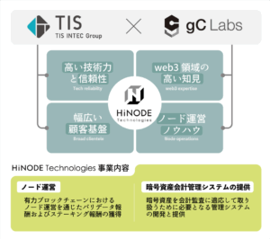 画像引用元:TISとgC Labs、合弁会社設立に向けた基本合意を締結 ~web3の基盤を支えるノード運営を中心とした事業を展開~ | 株式会社Hinode Technologies